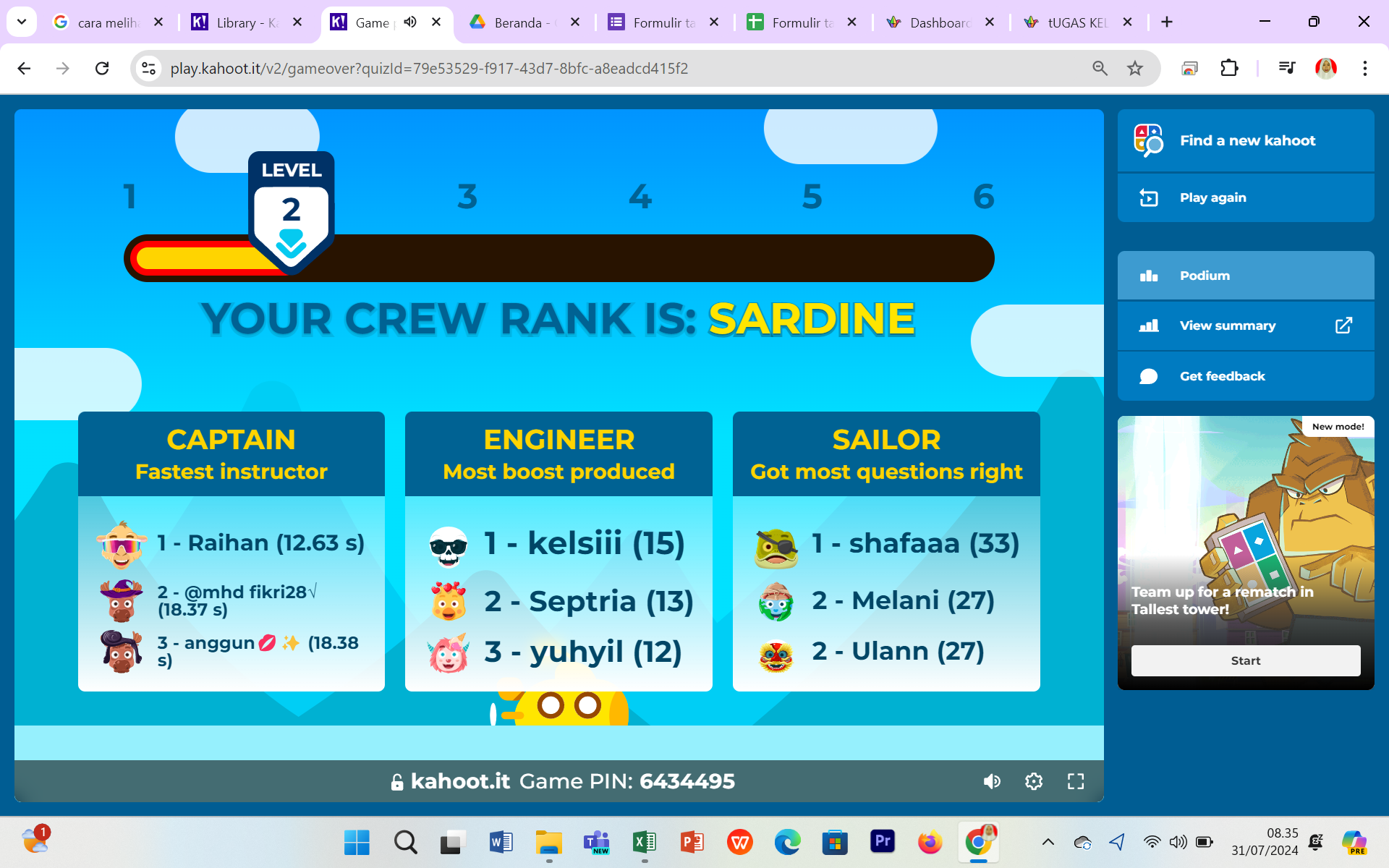 Untuk memenuhi tuntutan tersebut guru diwajibkan untuk peka pada teknologi begitu juga Tenaga Pendidik di MAN 1 Bungo Plus Keterampilan. Salah seorang Guru Informatika Ibu S. S Ningsih memanfaatkan Aplikasi Kahoot! dalam Proses KBM.