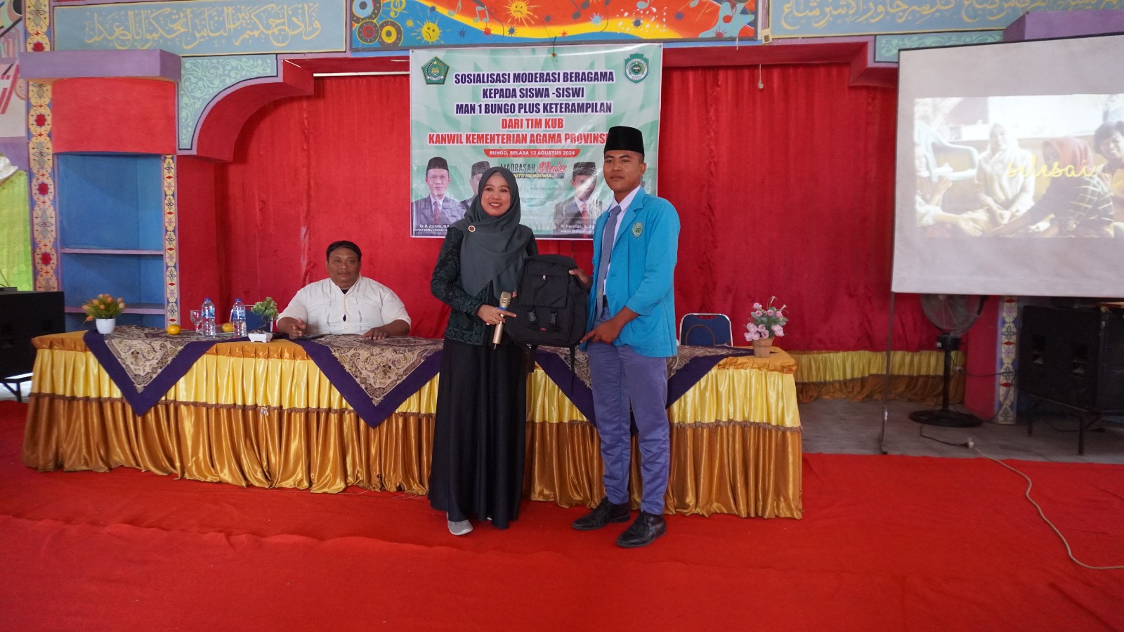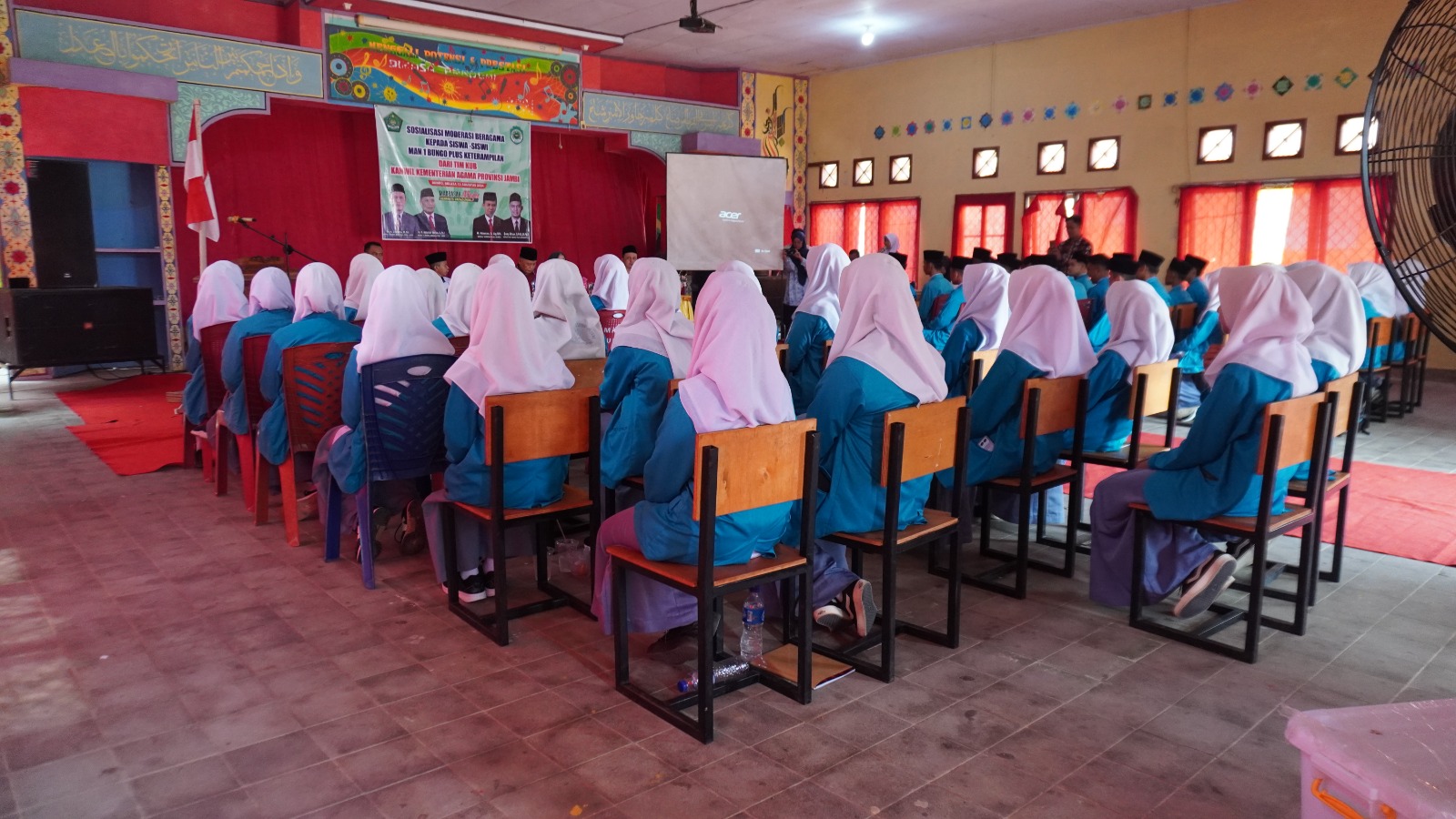 Bungo (MAN 1 Bungo Plus Keterampilan), Siswa/ I MAN 1 Bungo mengikuti Kegiatan Sosialisasi Moderasi beragama oleh Kabag TU Kanwil Kemenag Provinsi Jambi dan Tim Kerukunan Umat Beragama di Aula MAN 1 Bungo Plus Keterampilan selasa 13/08/2024.