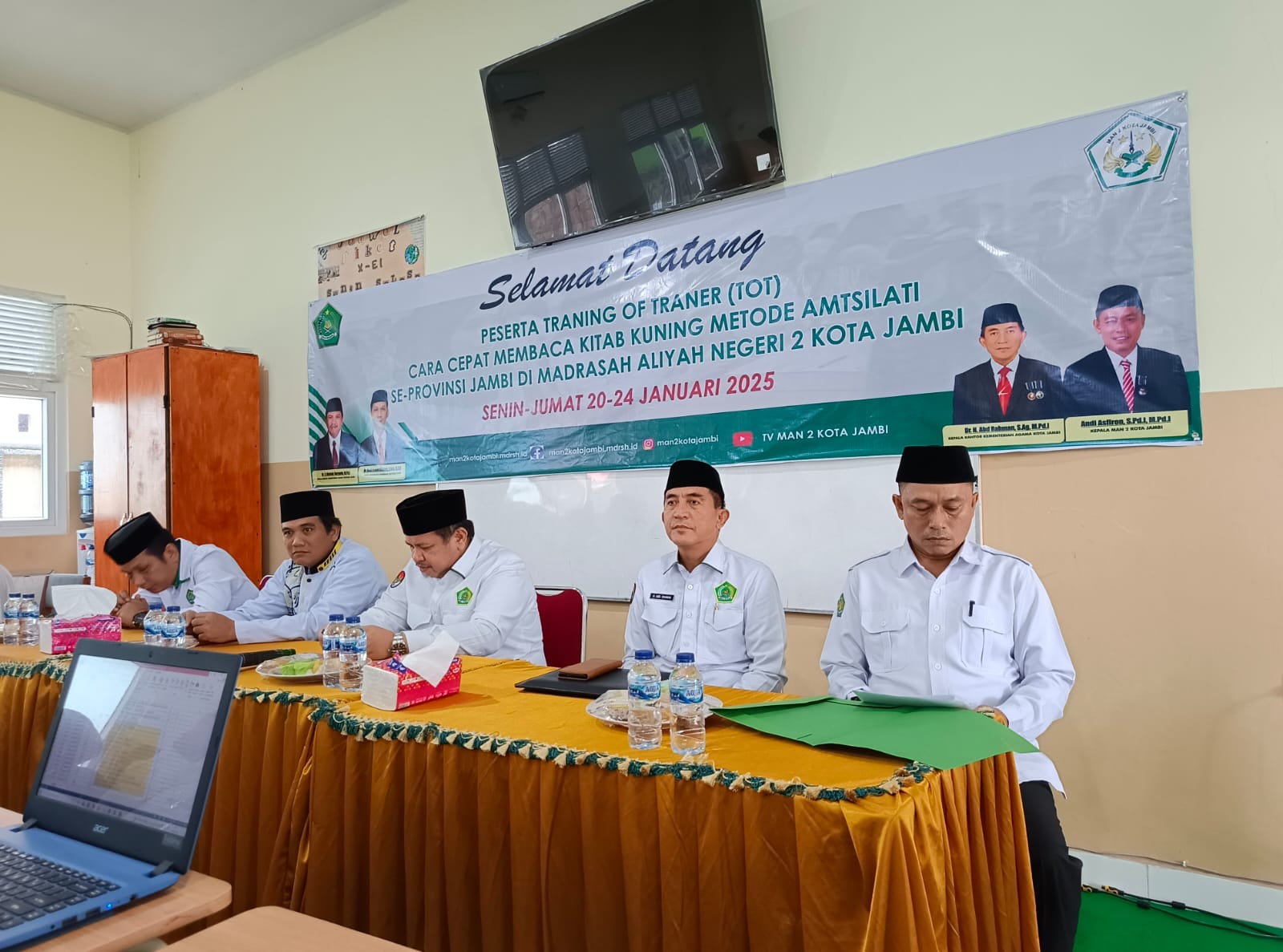 Bungo, (MAN 1 BUNGO). Sebanyak 36 peserta mengikuti Training of Trainer (TOT) metode Amsilati untuk membaca kitab kuning yang diselenggarakan oleh Kementerian Agama Republik Indonesia Kantor Wilayah Kementerian Agama Provinsi Jambi. Kegiatan ini berlangsung selama 4 hari, Senin s.d Jumat tanggal 20- 24 Januari 2025 di MAN 2 Kota Jambi.