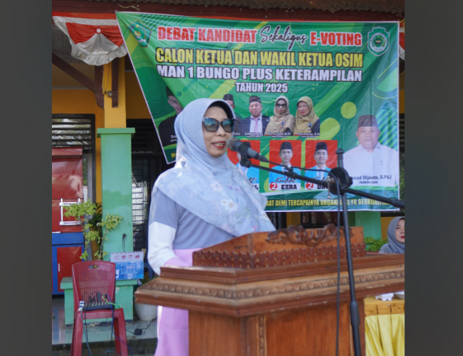 Bungo (MAN 1 Bungo Plus Keterampilan) hari ini Sabtu, 1 Februari 2025 Pelaksanaan kegiatan debat dan pemilihan ketua OSIM (Organisasi Siswa Intra Madrasah) MAN 1 Bungo menjadi contoh nyata penerapan moderasi beragama dalam kehidupan berorganisasi di lingkungan madrasah. Acara yang diselenggarakan pada Sabtu (1/2/2025) ini menunjukkan bahwa nilai-nilai Islam dapat berjalan selaras dengan prinsip-prinsip demokrasi modern.