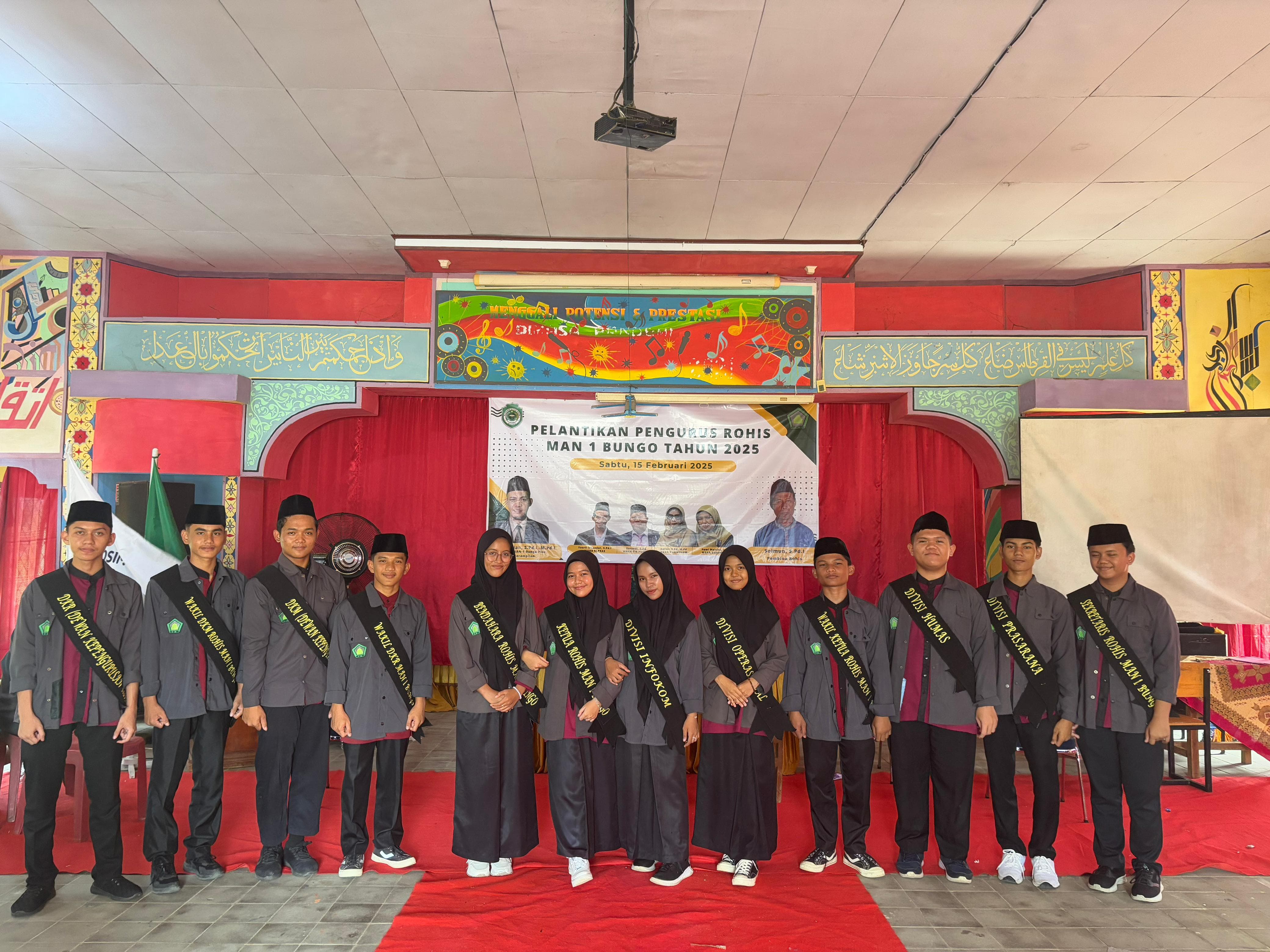 BUNGO - Madrasah Aliyah Negeri (MAN) 1 Bungo Plus Keterampilan menggelar acara pelantikan pengurus Rohani Islam (ROHIS) untuk periode tahun 2025 pada Sabtu (15/2/2025). Acara yang berlangsung di Aula MAN 1 Bungo ini dihadiri oleh Kepala Madrasah, wakil kepala madrasah, Kepala Labor Agama, Pembina OSIM serta Ekskul lainya dan seluruh siswa-siswi anggota ROHIS.