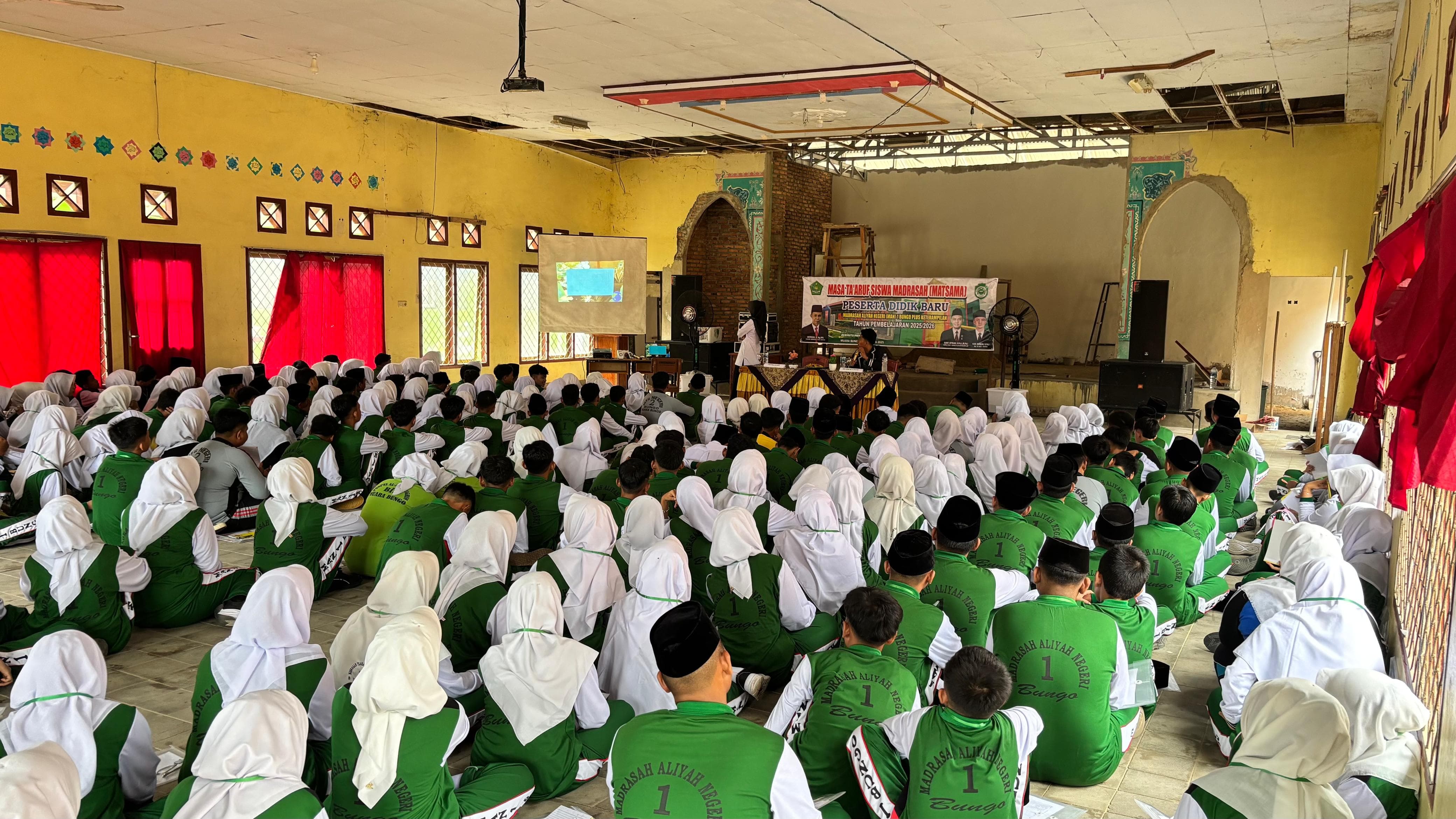 "Dengan mengucapkan bismillahirrahmanirrahim, saya nyatakan MATSAMA MAN 1 Bungo tahun ajaran 2025/2026 resmi dibuka," ucap Ibu Karmi yang disambut tepuk tangan meriah dari seluruh peserta.
