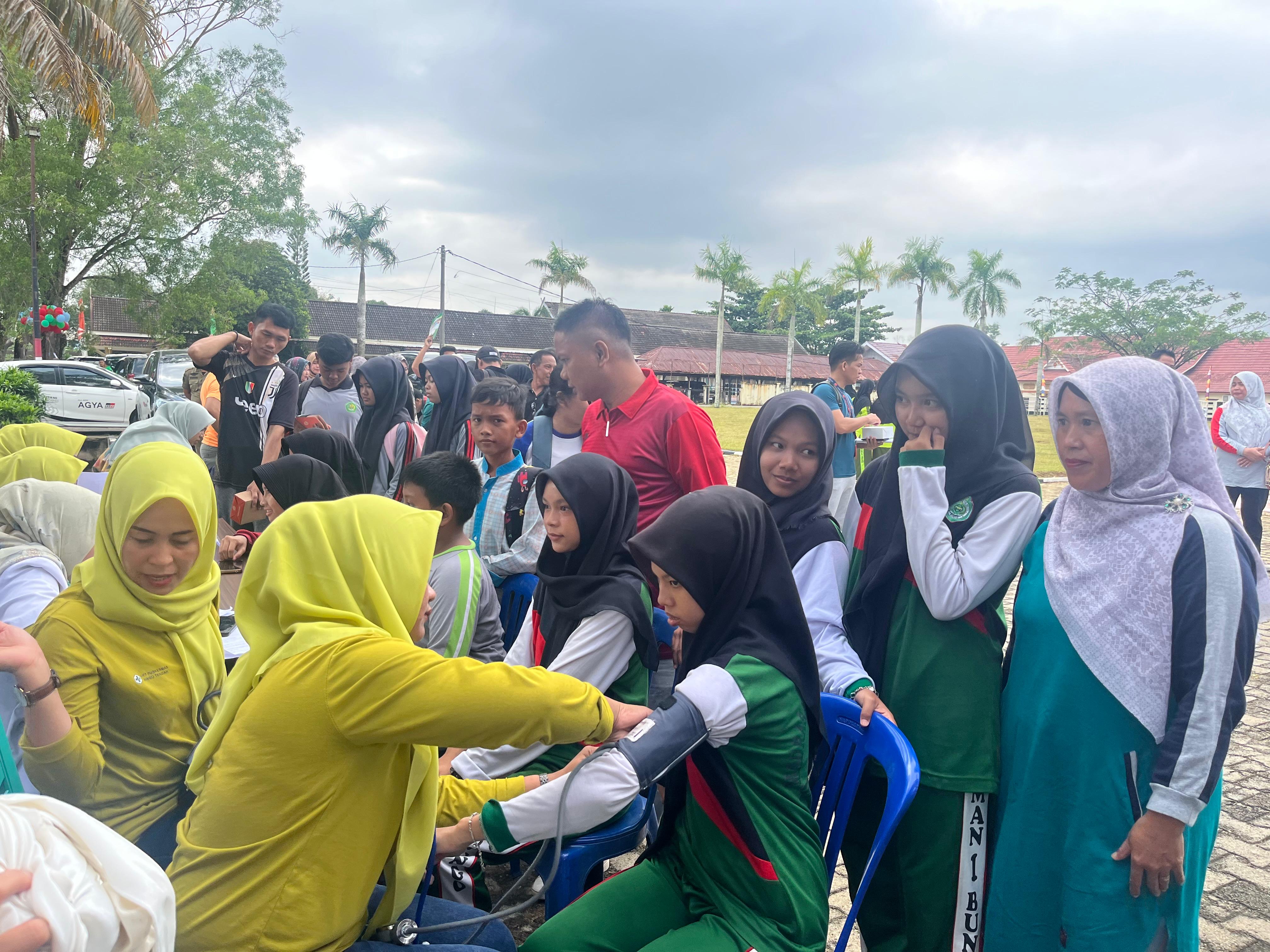 Bungo - Pembina dan beberapa anggota Ekstrakurikuler Palang Merah Remaja (PMR) MAN 1 Bungo mengikuti kegiatan pelaksanaan Kick Off Cek Kesehatan Gratis Anak Sekolah dan ASN yang diselenggarakan sebagai bagian dari Program Cek Kesehatan Gratis (CKG) bagi peserta didik di seluruh Indonesia.