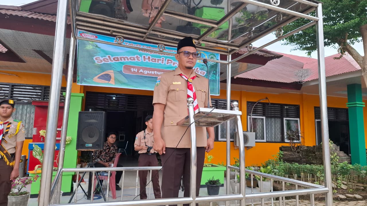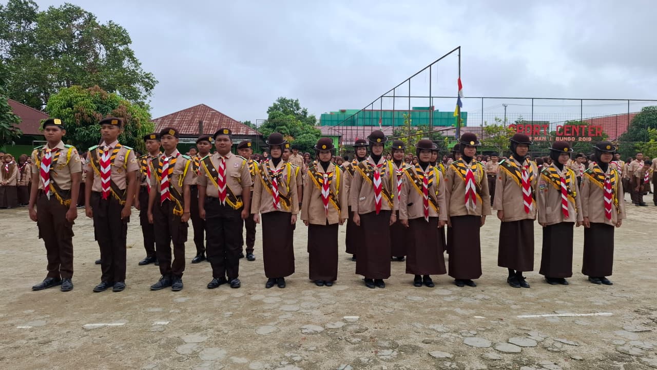 BUNGO - Gerakan Pramuka Gugus Depan (Gudep) 02.007_02.008 Pangkalan MAN 1 Bungo menggelar upacara peringatan Hari Pramuka ke-64 tahun 2025 dengan penuh khidmat. Upacara yang berlangsung dengan tertib ini dipimpin oleh Kamabigus (Ketua Majelis Pembimbing Gugus Depan) Kakak Dony Afrian, M.Pd.I sebagai pembina upacara.
