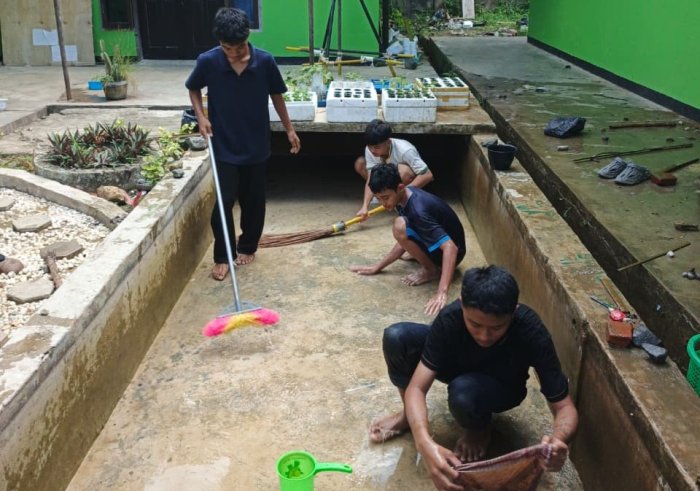 Proses pembersihan kolam dimulai setelah jam pembelajaran seslesai dengan pembagian tugas yang jelas. Sebagian siswa menguras air lama dan membersihkan dasar kolam dari lumut, sementara kelompok lain menyiapkan air bersih dan menata tanaman hias di sekitar kolam. Kegiatan ini juga mendapat perhatian dari kepala sekolah yang meninjau langsung ke lokasi. Kepala sekolah memberikan apresiasi atas kerja sama dan dedikasi para siswa. "Kegiatan seperti ini perlu dijadikan contoh bagi kelas lain. Lingkungan yang bersih dan asri akan mendukung semangat belajar dan prestasi siswa," ujarnya.