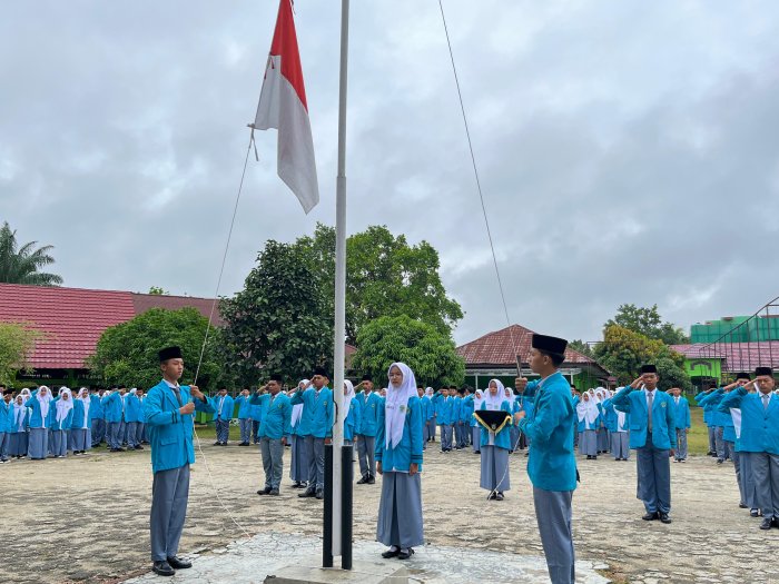 Bungo- Upacara bendera di MAN 1 Bungo pada hari ini berlangsung lancar dan penuh khidmat. Kegiatan rutin mingguan tersebut dipimpin oleh tim gabungan dari berbagai ekstrakurikuler sekolah. Pelaksanaan upacara ini menjadi ajang pembuktian kualitas dan dedikasi tinggi para anggota ekstrakurikuler yang bertugas sebagai petugas upacara.