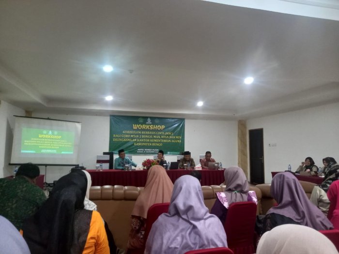 Bungo (MAN 1 Bungo)- Workshop Kurikulum Berbasis Cinta (KBC) digelar di Kabupaten Bungo pada 1 November 2025. Kegiatan ini diadakan di Hotel Wiltop dan diikuti oleh puluhan guru dari berbagai jenjang madrasah, seperti MTsN 2 Bungo, MAN, MTsN, dan MIN yang berada di bawah naungan Kantor Kementerian Agama Kabupaten Bungo.