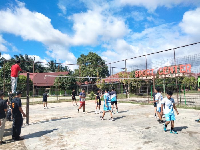 Bungo (MAN 1 Bungo)- Tim voli putra MAN 1 Bungo mengadakan pertandingan persahabatan melawan tim voli putra SMKN 4 di Gelanggang Sport Center MAN 1 Bungo pada Kamis, 18 Desember 2025. Pertandingan ini berlangsung sengit dan menjadi bagian dari upaya pembinaan serta peningkatan kemampuan para atlet muda di cabang olahraga bola voli.