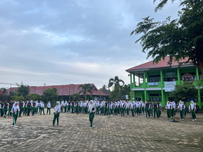 Meskipun lapangan madrasah masih lembap dan basah akibat hujan deras yang turun sepanjang malam, antusiasme para peserta didik tidak surut. Ratusan siswa tampak memenuhi halaman , menunjukkan dedikasi dan semangat mereka untuk memulai semester baru dengan aktivitas positif. Para siswa tetap mengikuti senam pagi dengan penuh semangat.