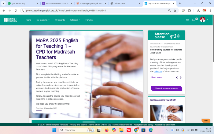 BUNGO - Guru Bahasa Inggris MAN 1 Bungo mengikuti kegiatan Zoom Meeting yang diselenggarakan oleh British Council bekerja sama dengan Ministry of Religious Affairs (MORA) atau Kementerian Agama Republik Indonesia. Kegiatan ini merupakan bagian dari program peningkatan kompetensi guru bahasa Inggris di lingkungan madrasah.