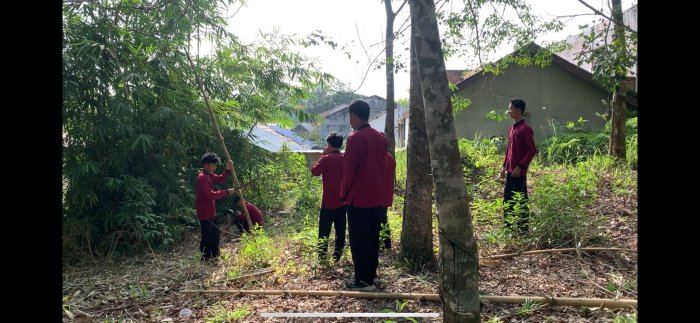 BUNGO - Siswa kelas XII program Keterampilan Budidaya Tanaman Hidroponik MAN 1 Bungo melaksanakan Praktik Kerja Lapangan (PKL) dengan memanfaatkan pohon bambu sebagai properti dan alat bantu dalam budidaya tanaman. Kegiatan ini dilaksanakan di lingkungan MAN 1 Bungo di bawah bimbingan Bapak Syamsul, S.Sos.
