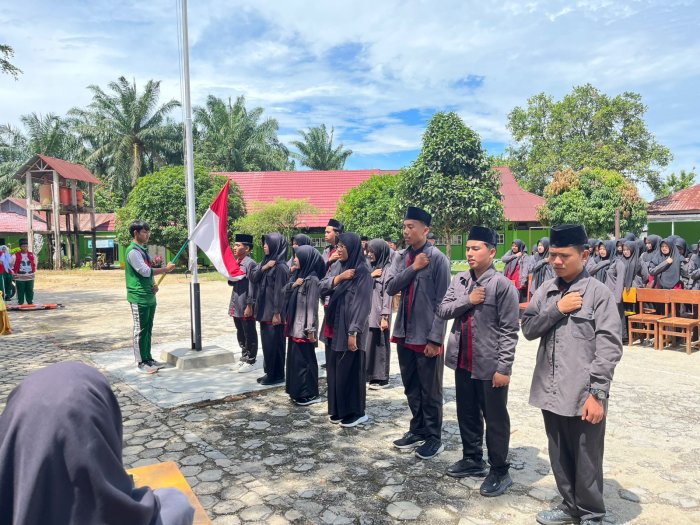 Acara pelantikan tersebut dipimpin langsung oleh Wakil Kepala Madrasah Bidang Akademik, Ibu Karmi, M.Pd., yang turut didampingi oleh Pembina ROHIS, Abi Saimun, S.Pd.I. Dalam sambutannya, Ibu Karmi menegaskan pentingnya peran ROHIS sebagai wadah pengembangan spiritualitas dan karakter Islami di lingkungan sekolah. Ia berharap para pengurus baru dapat menjalankan program-program keagamaan dengan penuh tanggung jawab dan dedikasi.