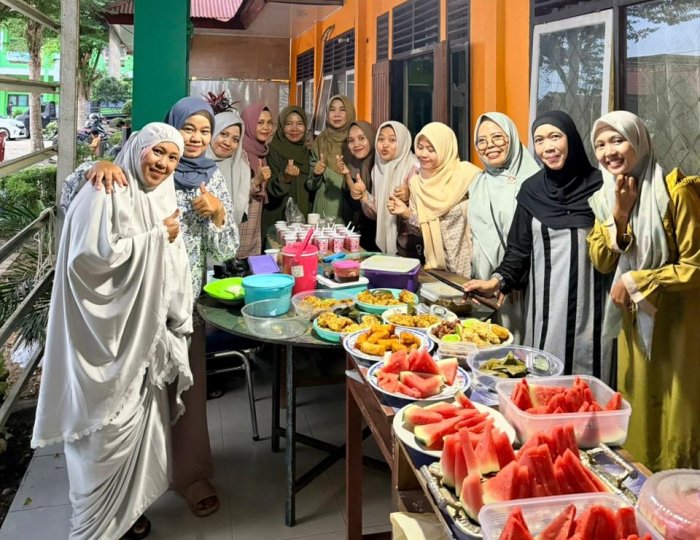 Menjelang waktu berbuka, seluruh peserta mengikuti doa bersama dengan penuh khidmat. Setelah azan Magrib, para guru dan staf menikmati hidangan yang telah dibawa, sambil bercengkerama dalam suasana harmonis dan penuh keakraban.