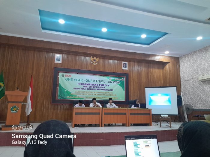 Bungo- Kepala Urusan Tata Usaha (Kaur TU), Wakil Kepala Madrasah Bidang Kurikulum (Waka Kurikulum), Wakil Kepala Madrasah Bidang Kesiswaan (Waka Kesiswaan), serta Operator MAN 1 Bungo mengikuti kegiatan Pendampingan PMPZI dan Short Course Pengisian Lembar Kerja Evaluasi PMPZI Kemenag 2026. Acara ini berlangsung di Aula Kantor Kementerian Agama Kabupaten Bungo pada Selasa, 10 Maret 2026.