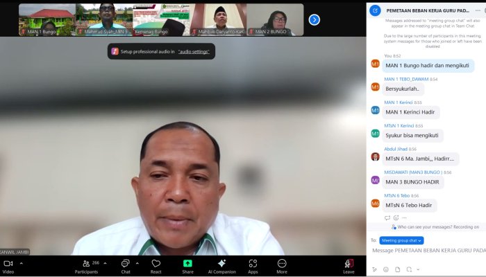 Rapat koordinasi tersebut bertujuan untuk finalisasi data pemetaan beban kerja guru melalui aplikasi Sistem Informasi Pemetaan Beban Kerja Guru (SIMPEMA Bejagur). Kegiatan ini merupakan tindak lanjut dari Surat Keputusan Kepala Kantor Wilayah Kementerian Agama Provinsi Jambi Nomor 30 Tahun 2026 mengenai pembentukan Tim Pemetaan Beban Kerja Guru bagi pegawai pemerintah dengan perjanjian kerja.