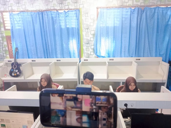 Para peserta mengerjakan soal matematika menggunakan sistem Computer Based Test (CBT) melalui platform resmi Orbit Edutech. Selama ujian, pengawasan dilakukan secara daring menggunakan aplikasi Zoom, sehingga integritas pelaksanaan tetap terjaga. Fasilitas Labor TIK yang memadai di MAN 1 Bungo mendukung kelancaran ujian, memungkinkan siswa berkonsentrasi penuh di bawah bimbingan guru pendamping.