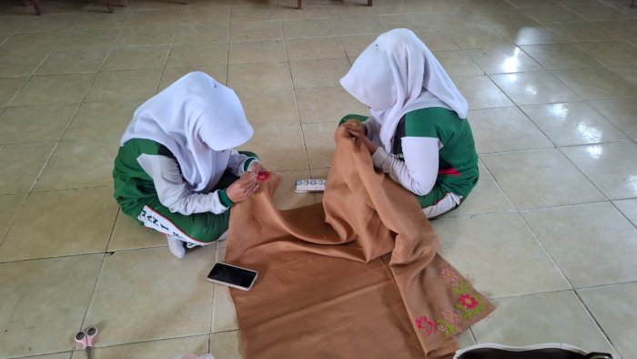Pada ujian praktik tersebut, para siswa diminta untuk membuat produk kerajinan tangan berupa sulaman. Sulaman merupakan salah satu seni kerajinan tekstil tradisional yang memerlukan ketelitian, kesabaran, dan kepekaan estetika. Setiap siswa mengerjakan sulaman secara mandiri, namun tetap didampingi oleh guru pembimbing mata pelajaran Seni Budaya dan Prakarya.